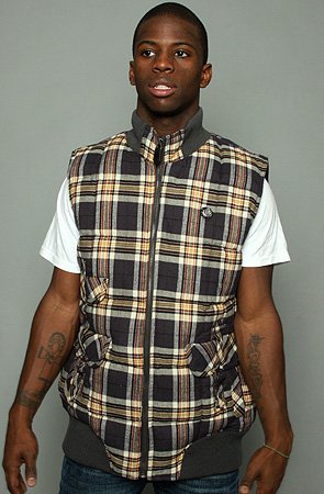 Artful Dodger The Tiles Plaid Vest in Granite,Vests for Men: Model is wearing a size MEDIUM The Tiles Plaid Vest in Granite features a 90% cotton 10% wool shell 100% polyester lining and an 80% poly 20% down filling (super heavy and warm) three clasp closure waist pockets two zip closure stash pockets behind the zipper and an Artful Dodger enamel logo at the left chest. By Artful Dodger