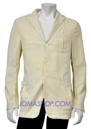 Cream corduroy textured blazer with 3 white mother-of-pearl buttons. 2 front pockets, 1 breast pocket. Shell 100% cotton, lining 100% viscose.